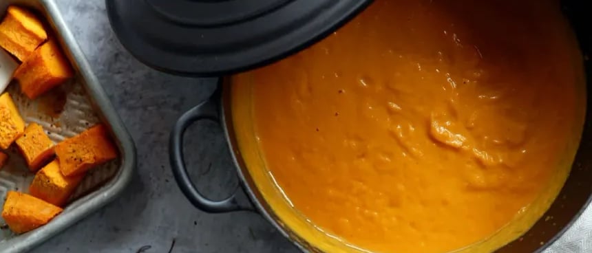 Olvídate de hervir la calabaza en agua. Si la asas primero en el horno, los azúcares se caramelizan y el sabor se multiplica por diez. El jengibre le da ese toque picante que "levanta" el plato.